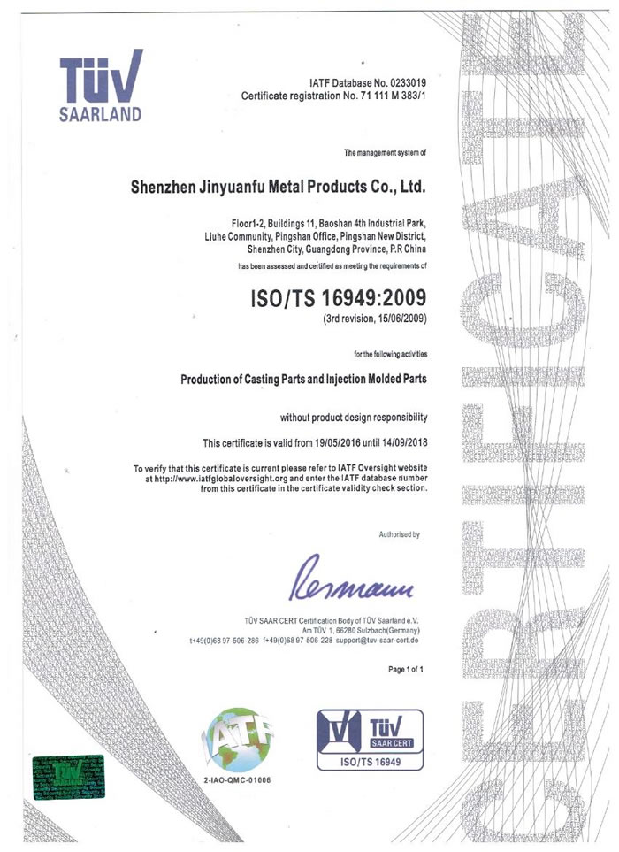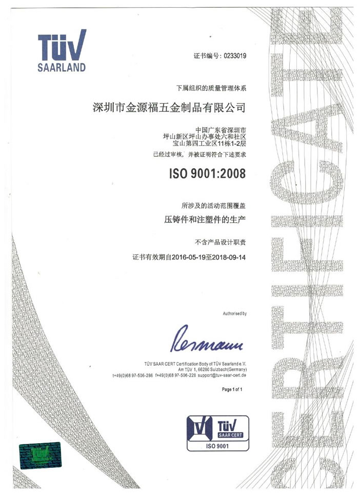 深圳市金源福五金制品有限公司成立于2003年。公司擁有8000多平方米生產(chǎn)廠地、開發(fā)與管理精英人才、技術(shù)專業(yè)、設(shè)備精良、交通便利、服務周全、具體設(shè)計、開發(fā)、制模、出樣、生產(chǎn)到成品出貨一體化模式生產(chǎn)廠家。已通過ISO9001:2008ISO1440/TS16949:2009國際質(zhì)量體系認證。專業(yè)生產(chǎn)鋅合金壓鑄、鋁合金壓鑄產(chǎn)品、汽車配件、汽車后視鏡支架、車載導航散熱器、LED散熱器、LED燈罩、數(shù)碼電子五金結(jié)構(gòu)件、家具五金裝飾件、標牌(LOGO)等五金壓鑄產(chǎn)品。